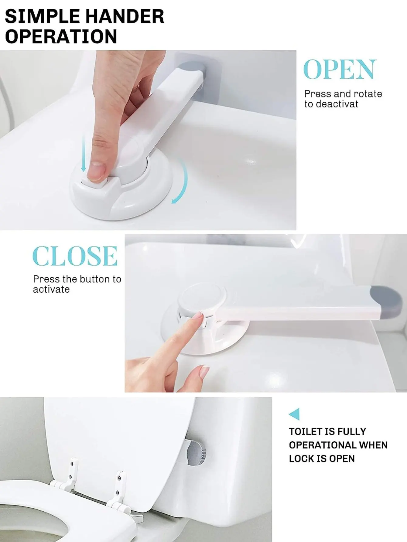 Ensure your child's safety with the Baby Toilet Safety Lock. This lock is designed to securely fasten your toilet lid, preventing any accidental openings. Keep your little one safe with this essential bathroom accessory.